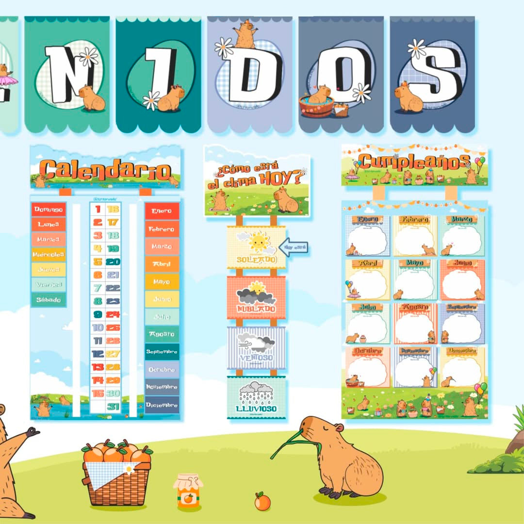 Todos los PDF están en formato A4 _ 14 fichas-89 hojas en total_ algunas son armables -(calendario y cumpleañero armado: 36x64cm aproximadamente), utilizan 6 hojas.